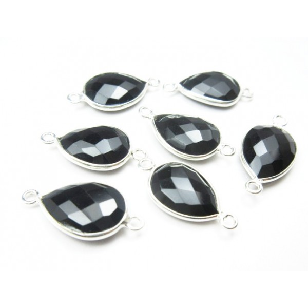 Goutte 10x8mm Onyx Noir Facettes Connecteur ARGENT VERITABLE | 25 | -20% |