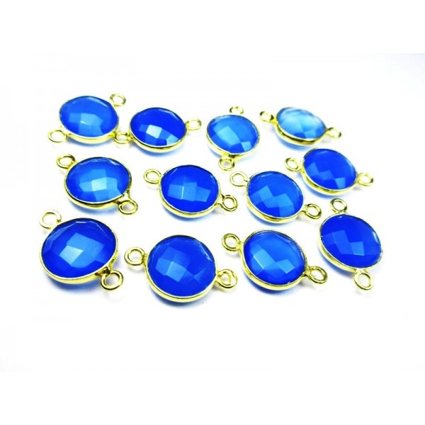 Rond 12mm Calcedoine Bleue Facettes Connecteur ARGENT VERITABLE doré | 10 | -10% |