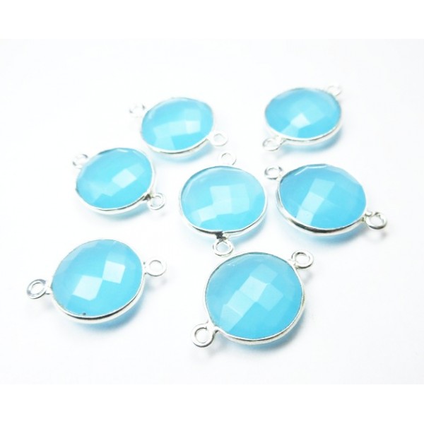 Pierre sertie Connecteur 2 Anneaux ARGENT VERITABLE Calcedoine Perou Rond 14mm Facettes