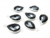 Pierre sertie Connecteur 2 Anneaux ARGENT VERITABLE Onyx Noir Goutte 18x13mm Facettes