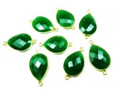 Pierre sertie Connecteur 2 Anneaux ARGENT VERITABLE Onyx Vert Goutte 18x13mm Facettes