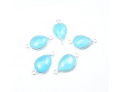 Pierre sertie Connecteur 2 Anneaux ARGENT VERITABLE Calcedoine Perou Goutte 18x13mm Facettes
