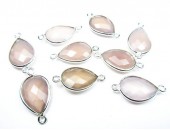 Pierre sertie Connecteur 2 Anneaux ARGENT VERITABLE Calcedoine Rose Goutte 18x13mm Facettes